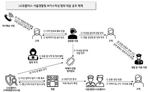 이후 LG유플러스의 고객피해방지시스템이 악성 앱 활동을 포착하면, 경찰은 유관기관과의 추가 분석을 실시하고, LG유플러스와 피해 예상자를 방문하는 공조가 이뤄지는 것이다.