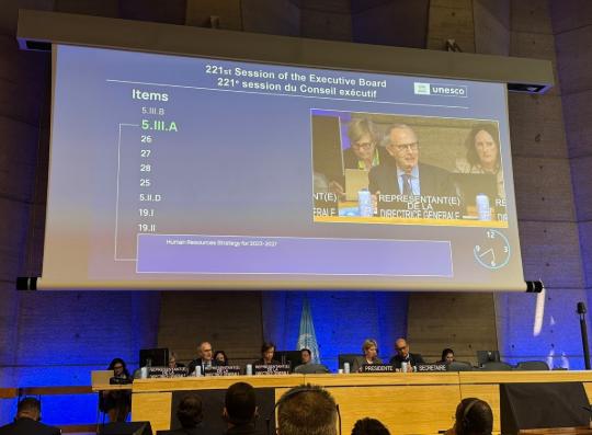 ▲프랑스에서 열린 제221차 유네스코 집행이사회.(사진 제공=유네스코 한국위원회)