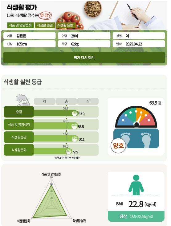 • 청소년·성인·노인용 3종 구성…등급·점수로 실천 수준 한눈에 확인