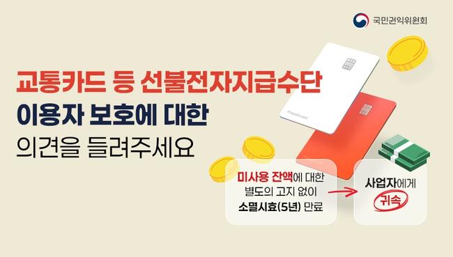 국민권익위원회가 선불전자지급수단에 충전된 금액이 사용되지 않고 소멸되는 문제를 해결하기 위해 국민 의견 수렴에 나섰다.
