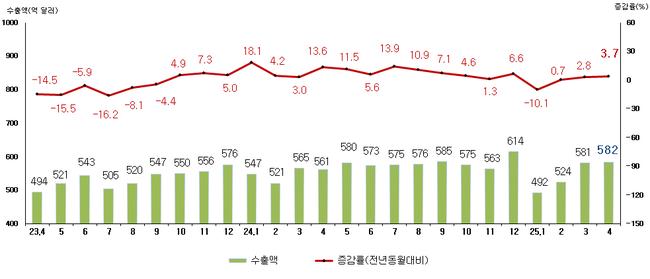 2025년 4월 수출 582억 달러…3개월 연속 증가세 이어가