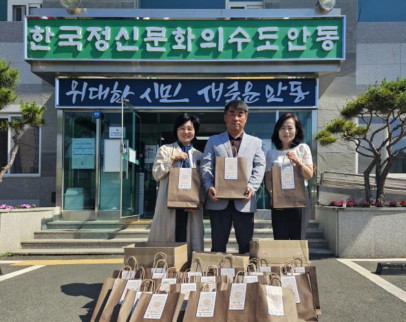 경북 안동시에 있는 안동생강연구소( 대표 강미혜)가 지난 4일 서후면행정복지센터에서 관내 국가유공자에게 자사에서 정성껏 만든 건강식품을 전달했다.