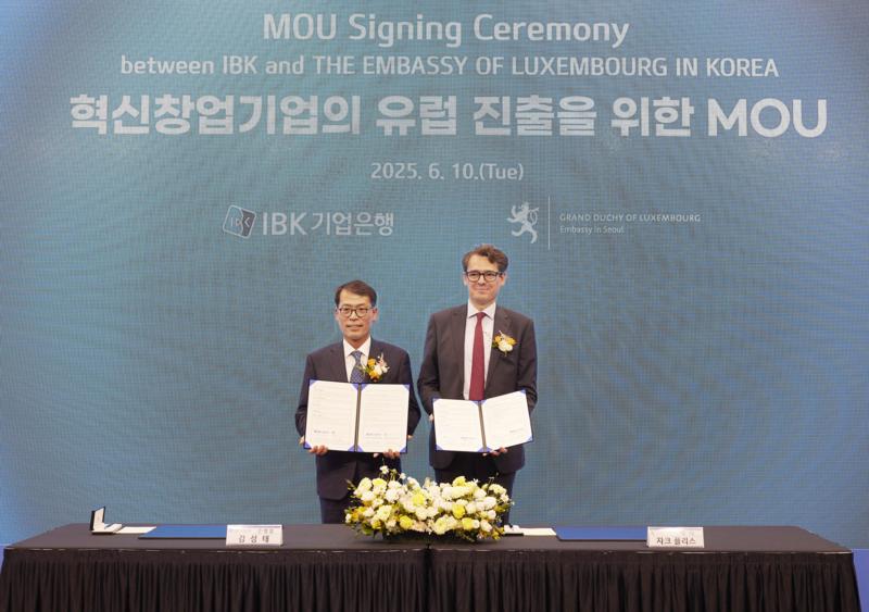 한편 기업은행은 10일 주한 룩셈부르크 대사관(대사 자크 플리스)과 IBK창공 혁신창업기업들의 성공적인 유럽 진출 및 현지 사업화를 지원하기 위해 ‘혁신창업기업의 유럽진출 지원을 위한 업무협약’을 체결했다.