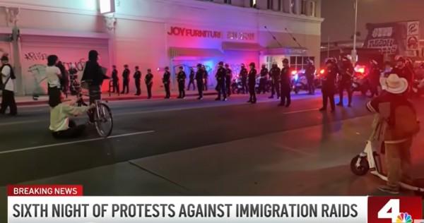 ▲시위 6일째 LA 다운타운 모습 (사진: 채널 4 영상 뉴스 화면 캡쳐)