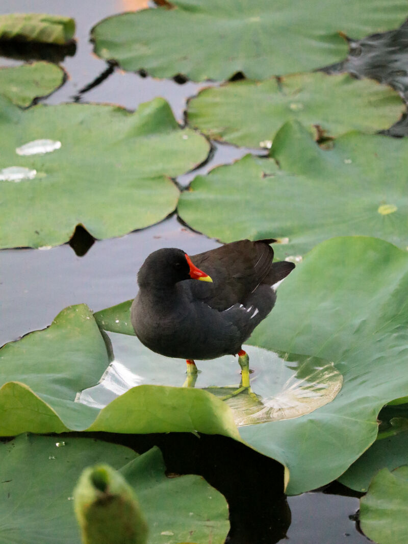 서울시 양천구 신정동 연의공원 저수지에서 쇠물닭이 새끼를 기르는 모습을 발견한 주민 이이은씨가 사진을 촬영했다. 촬영일시 2025년 6월 11일 오후 6시 경.