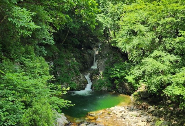 폭포 아래에는 깊은 못이 있으며, 주변의 수목과 어우러져 경관이 아름답다.