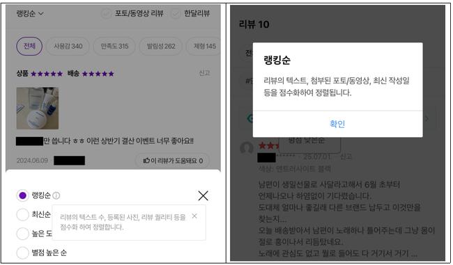 서울시는 이러한 방식이 소비자의 합리적 구매 결정을 방해할 수 있다고 지적했다. 자체 알고리즘 정렬은 대부분 높은 평점과 장점 중심의 리뷰를 우선적으로 노출시키며, 단점이나 낮은 평점의 리뷰는 소비자가 별도로 정렬 설정을 하지 않는 한 확인이 어렵다는 것이다.