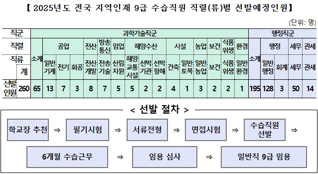 2025년도 전국 지역인재 9급 수습직원 직렬(류)별 선발예정인원 및 선발 절차