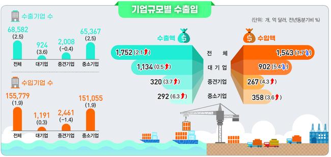 특히 대기업, 중견기업, 중소기업 모두 수출이 증가하며 전반적인 무역 개선세를 나타냈다.