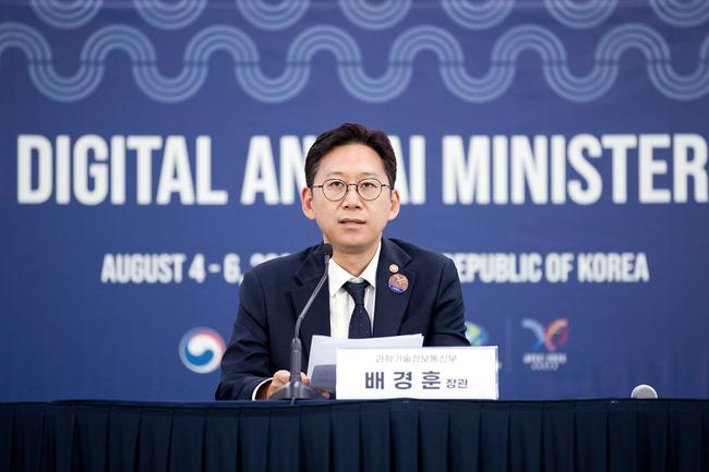 배경훈 과학기술정보통신부 장관이 지난 4일 오후 인천광역시 연수구 송도컨벤시아에서 `아시아태평양경제협력체(APEC) 디지털 AI 장관회의` 관련 브리핑을 하고 있다.