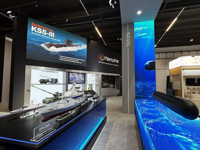 폴란드 키엘체에서 열리는 국제 방위산업 전시회(MSPO 2025)에 참가한 한화 부스에 장보고-III 배치-II 등 주요 제품이 전시돼 있다