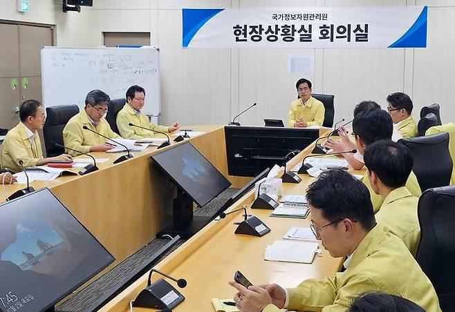 김민재 중앙재난안전대책본부 1차장(행정안전부 차관)이 지난 7일 국가정보시스템 복구 상황 점검회의를 주재하고 있다. 국가정보자원관리원(국정자원) 화재로 가동이 중단된 정부 행정정보시스템이 기존 647개에서 709개로 늘어났다. 이 중 1등급 핵심 시스템은 40개로 파악됐다.