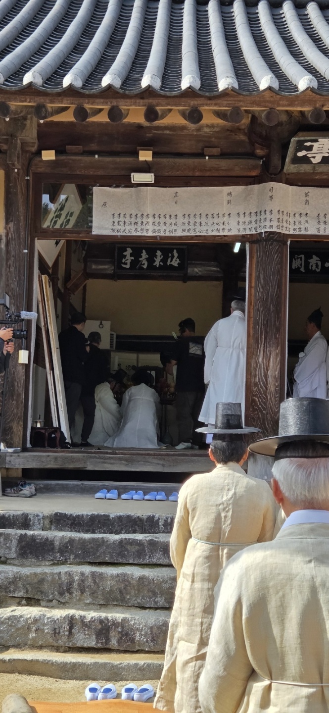 이번 ‘길사’는 이 교수가 부친 이근필(퇴계 이황의 16세손)의 기년상(朞年喪:기일 1년상)을 마치고 퇴계와 4대 선조에게 새 종손과 새 종부의 승계를 고하는 의례다.