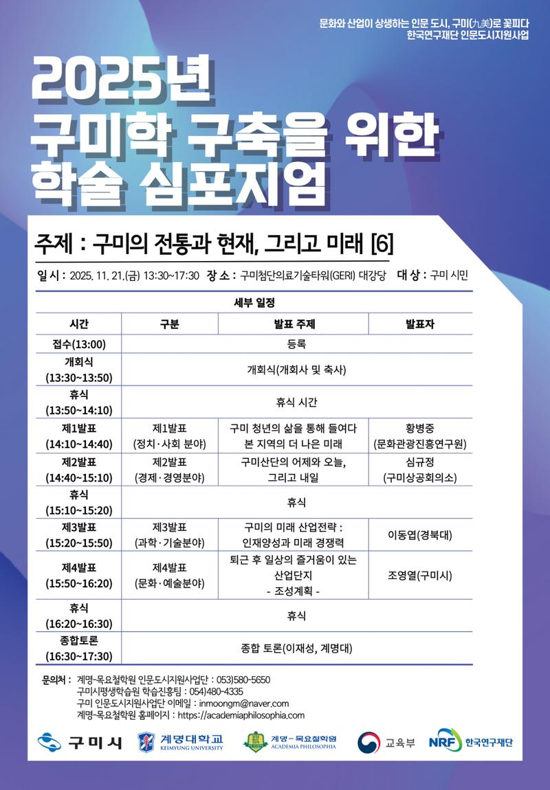 2025년 학술심포지엄은 이러한 지난 5년간의 성과를 바탕으로 '구미의 미래적 비전을 인문학적 관점에서 성찰한다'는 목표를 세웠다.
