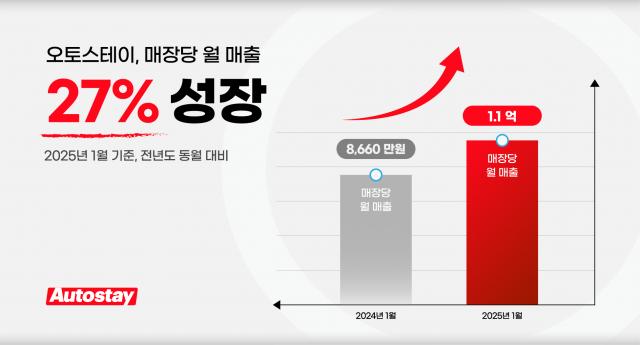 오토스테이는 2025년 1월 기준 전년 동월 대비 매장당 월 매출 27% 성장을 기록했으며, 월평균 매출 1.1억원을 달성했다