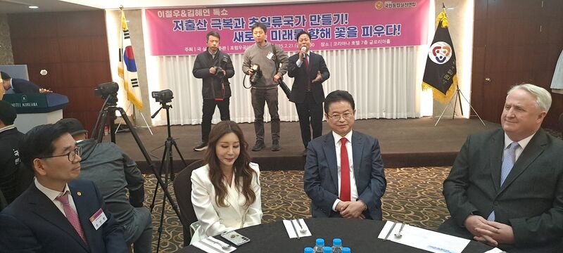 ▲이철우 경북지사는 21일 오후 서울 코리아나호텔 글로리아홀에서 ‘다둥이 엄마’ 김혜연 가수와 저출산 문제를 극복하기위한 토크쇼를 개최했다.