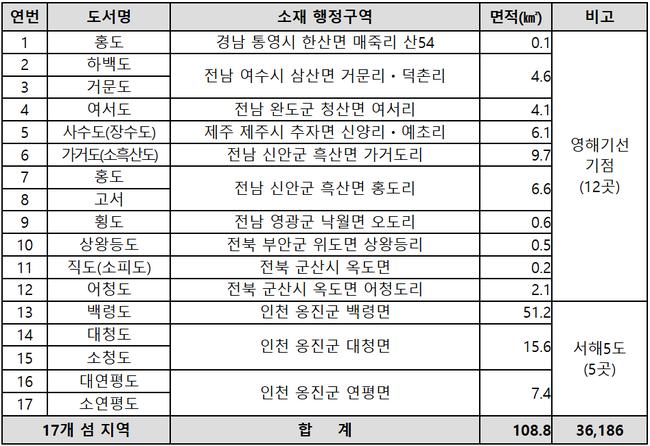 • 10년 만에 백령도·가거도 등 신규 지정… 영토주권 강화 및 국가안보 기여